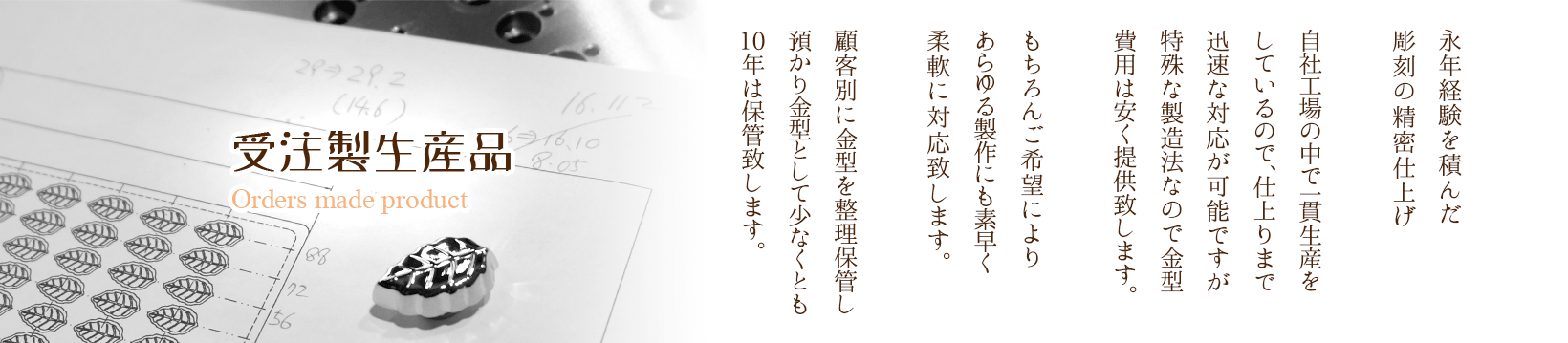 オリジナルモールドの制作や古い金型をお持ちで再利用したいお客さまはご相談ください。